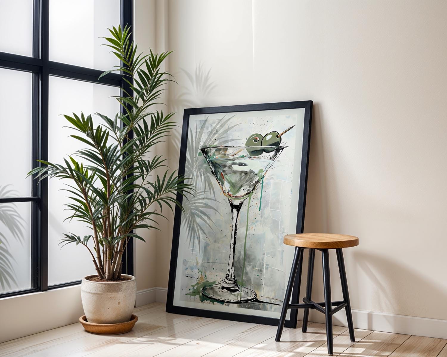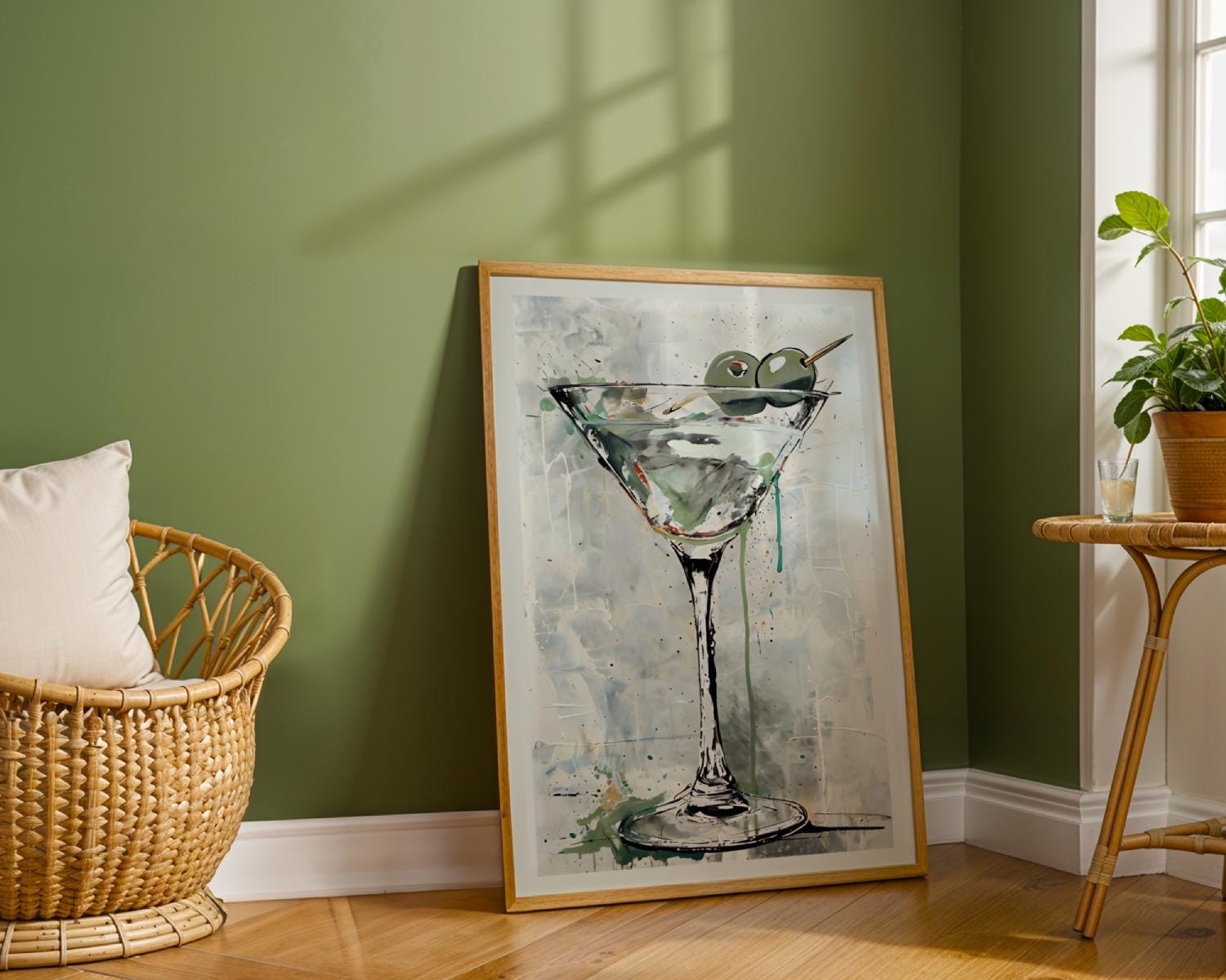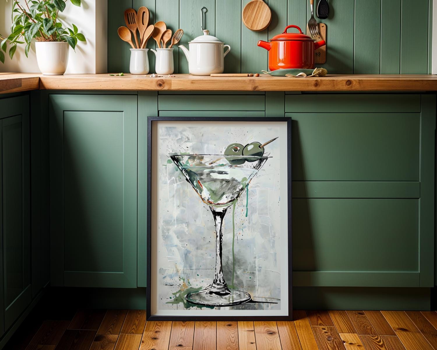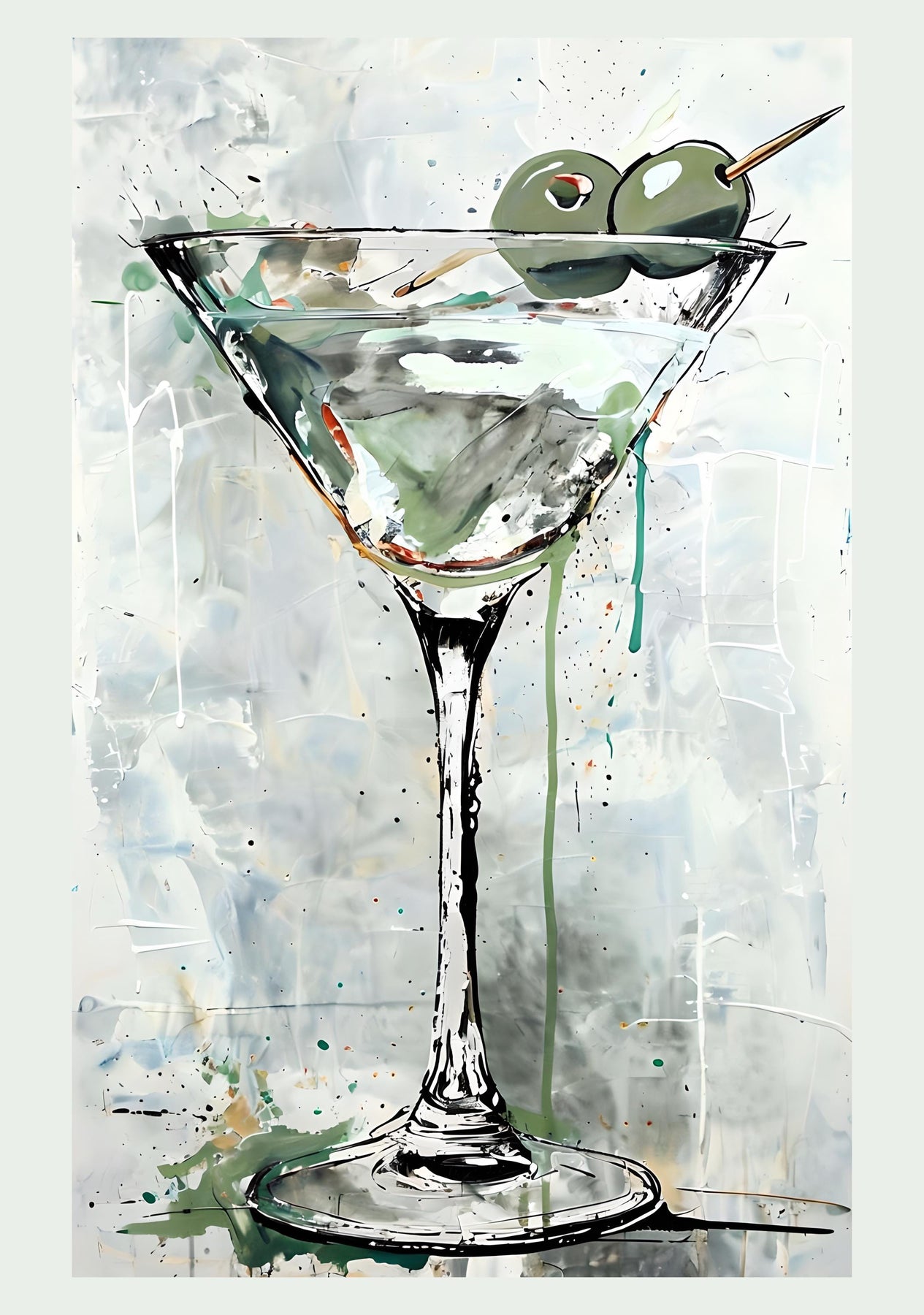 Bring a splash of modern sophistication to your space with this modern Martini Wall Art Print — featuring a beautifully painted martini glass accented by vibrant green olives and fluid watercolor strokes. The loose brushwork and dripped textures create an artistic yet classy vibe — perfect for elevating your home bar, kitchen, or lounge area. This digital download captures the spirit of relaxation and modern luxury, whether you’re hosting guests or simply enjoying your evening martini in style.
