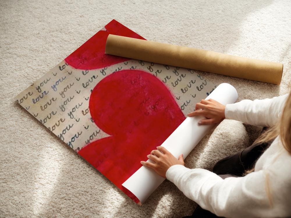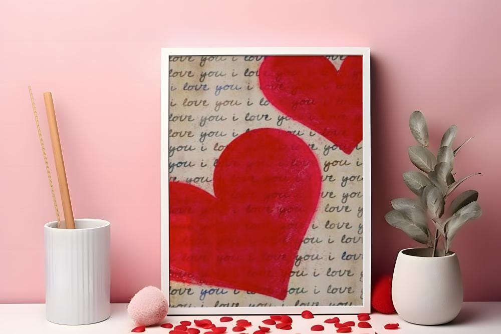 Bold, heartfelt, and expressive — this "I Love You" romantic heart print is perfect for Valentine’s Day or year-round romantic decor. Featuring rich red hearts layered over handwritten script, this piece makes a beautiful statement in bedrooms, gift spaces, or gallery walls.