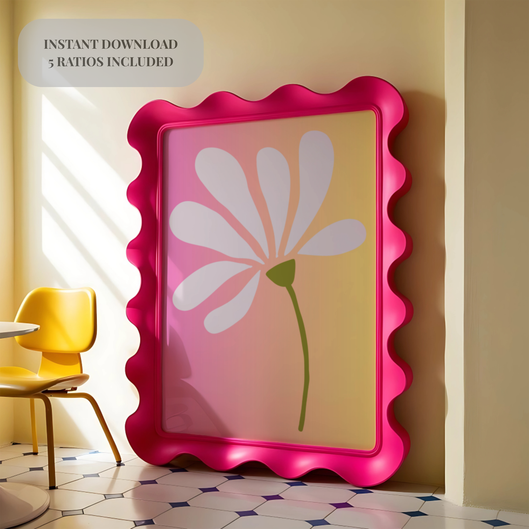 Minimalist Flower Art Print: Pink & Yellow Ombre (Digital Download)