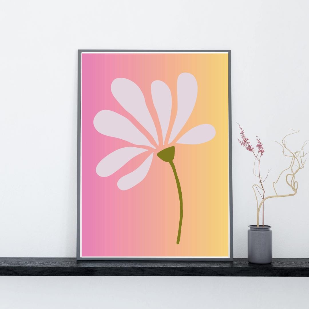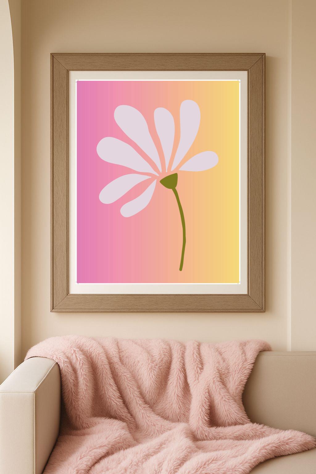 Minimalist Flower Art Print: Pink & Yellow Ombre (Dig...