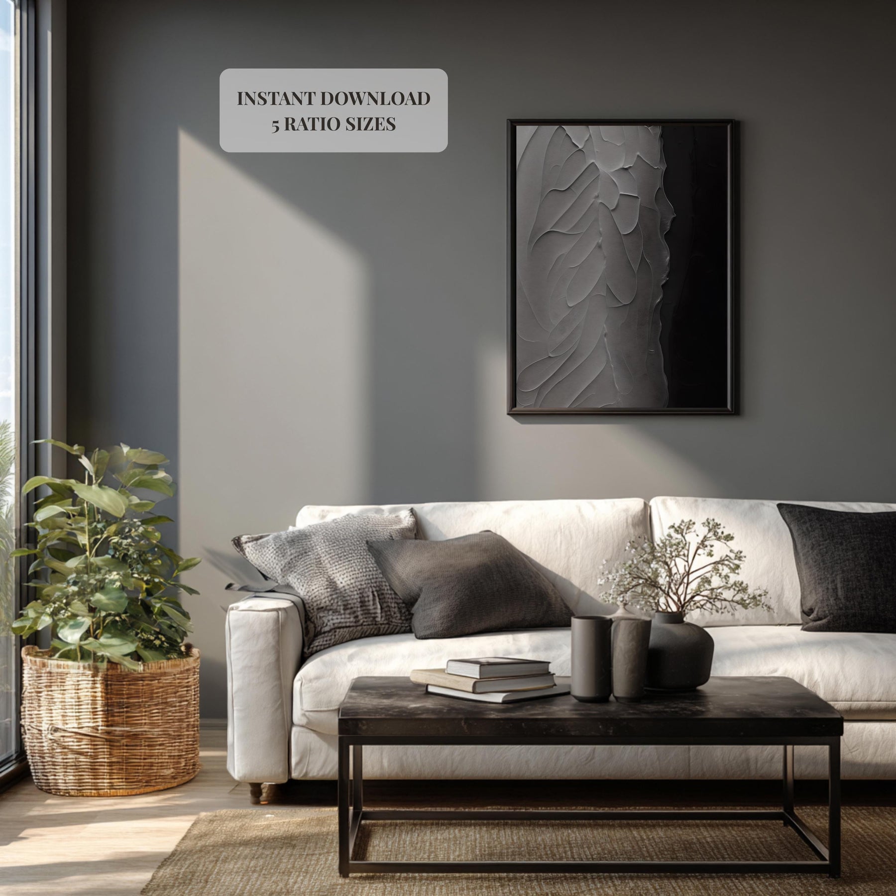 Elevate your space with this stunning Monochrome Abstract Texture Digital Print, an instant download masterpiece perfect for adding modern sophistication to any room. This unique piece captures raw, organic textures in a captivating grayscale palette, making it a versatile addition to minimalist, industrial, or contemporary decor styles