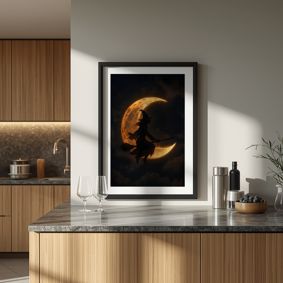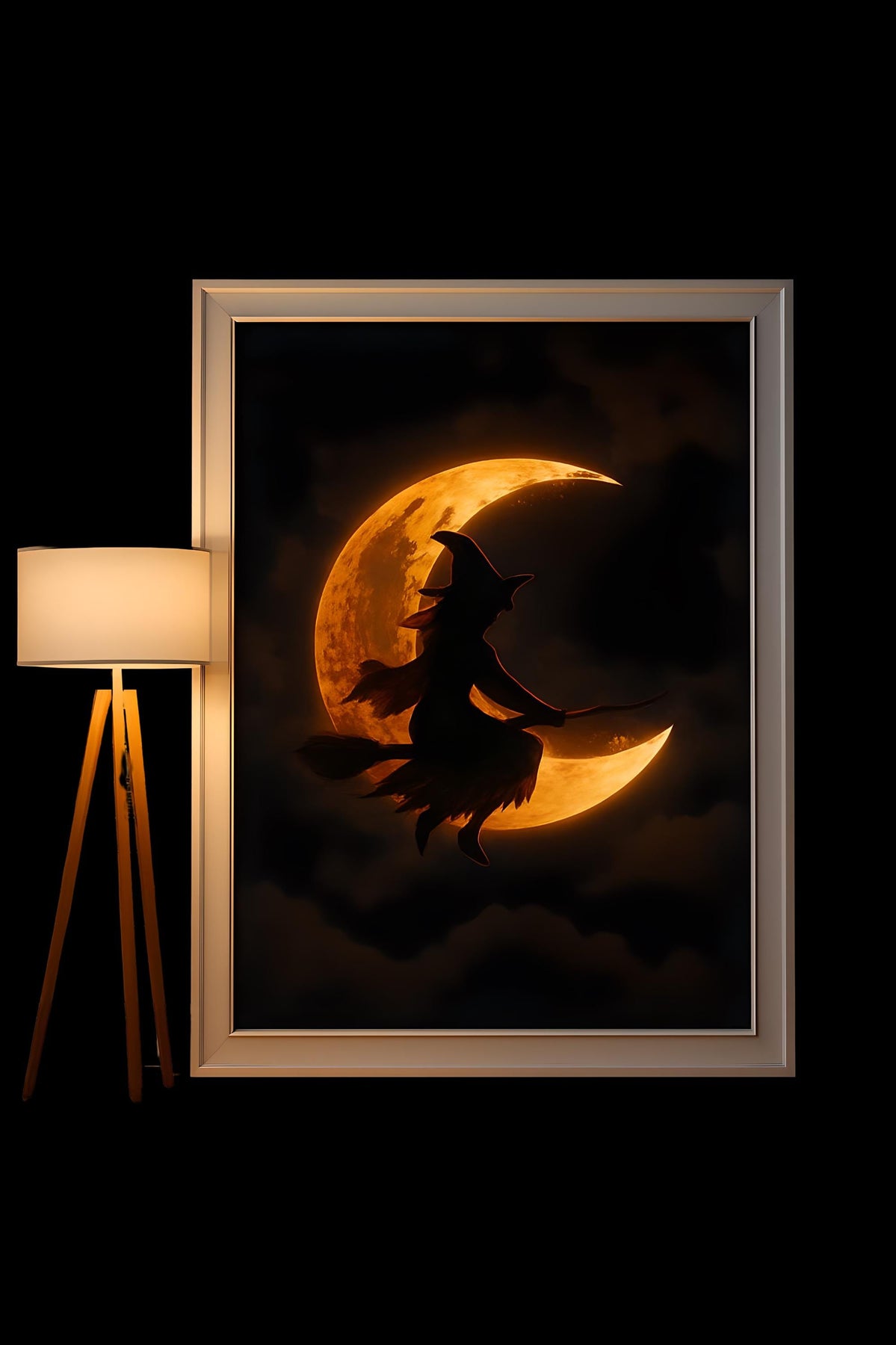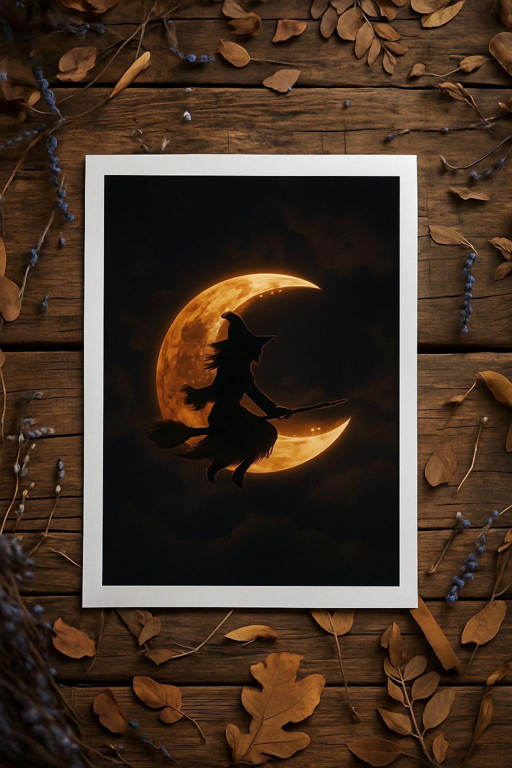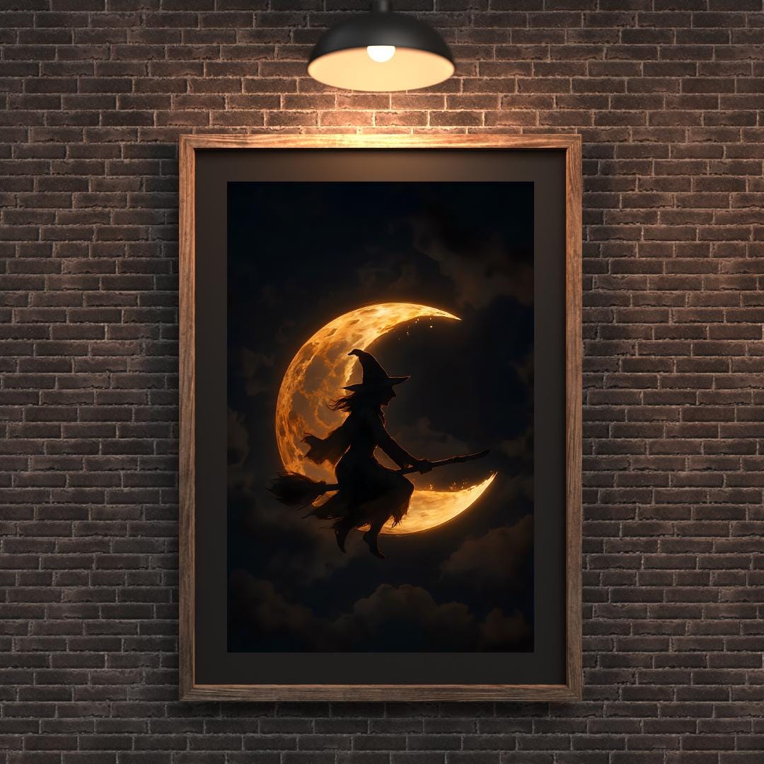 Witch Flying Across Moon | Gothic Digital Download | Halloween Wall Art