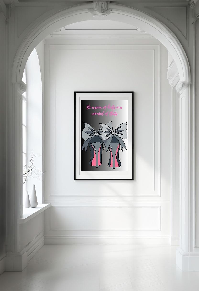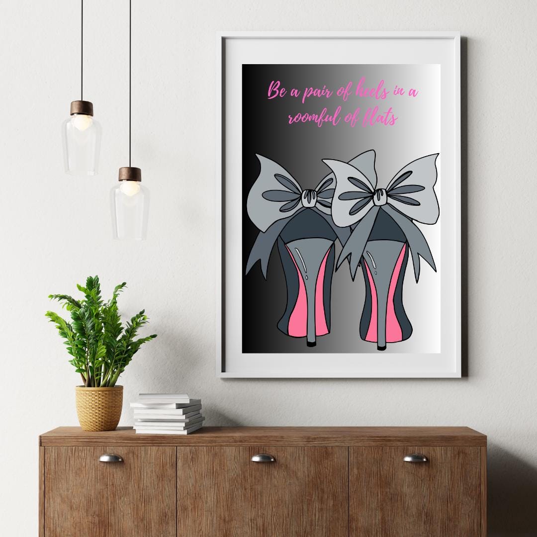 Transform your space with a touch of glamour and chic style! This high heels art print features a fashionable quote that adds a trendy vibe to your decor. Elevate your walls instantly with this digital download. Perfect for fashion enthusiasts!
